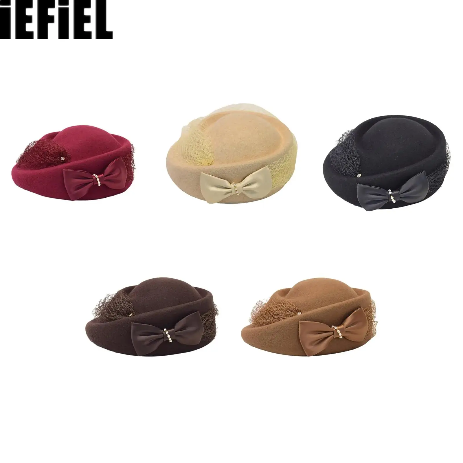 1ks vlna bow-tie flauš pillbox čepice adorned s falešný perly pro ženy svatební církev čepice mašle fedoras