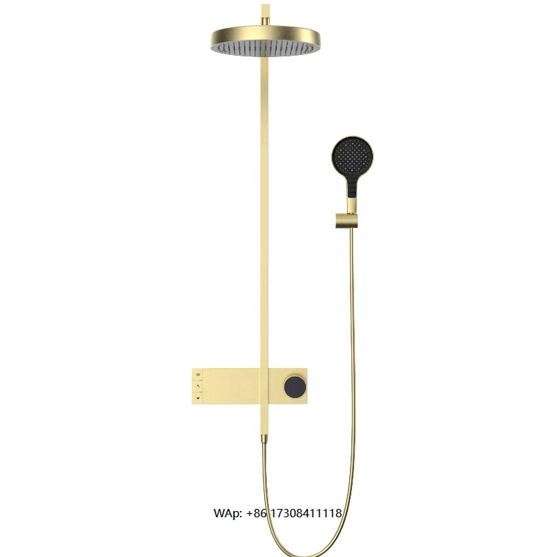 Digitální displej sprcha sada systém kapesní sprcha tělo jets srážky hlava matná černá kartáčovaný zlato koupelna sprcha sada