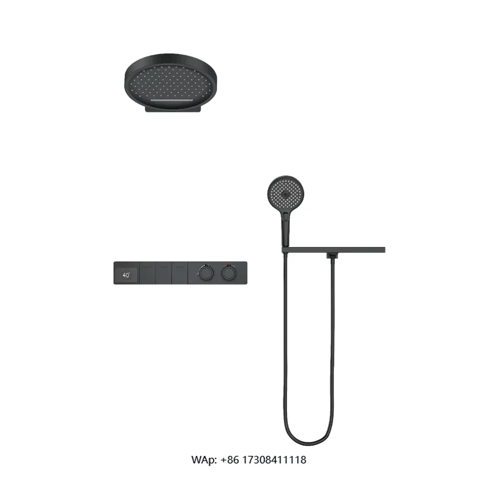 Nejnovější aféra černá sprcha systém koupelna strop termostatická LED sprcha sada s tělo dýza