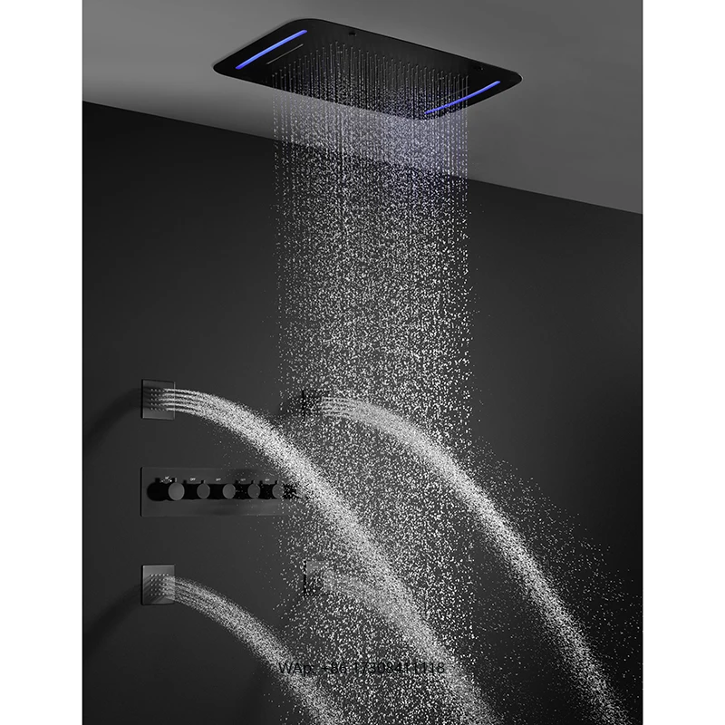 Lehký luxusní mosaz čtverec digitální displej termostatická zeď sprcha sada déšť rozprašovací vodopád vývod velký nejvyšší rozprašovací chytrý
