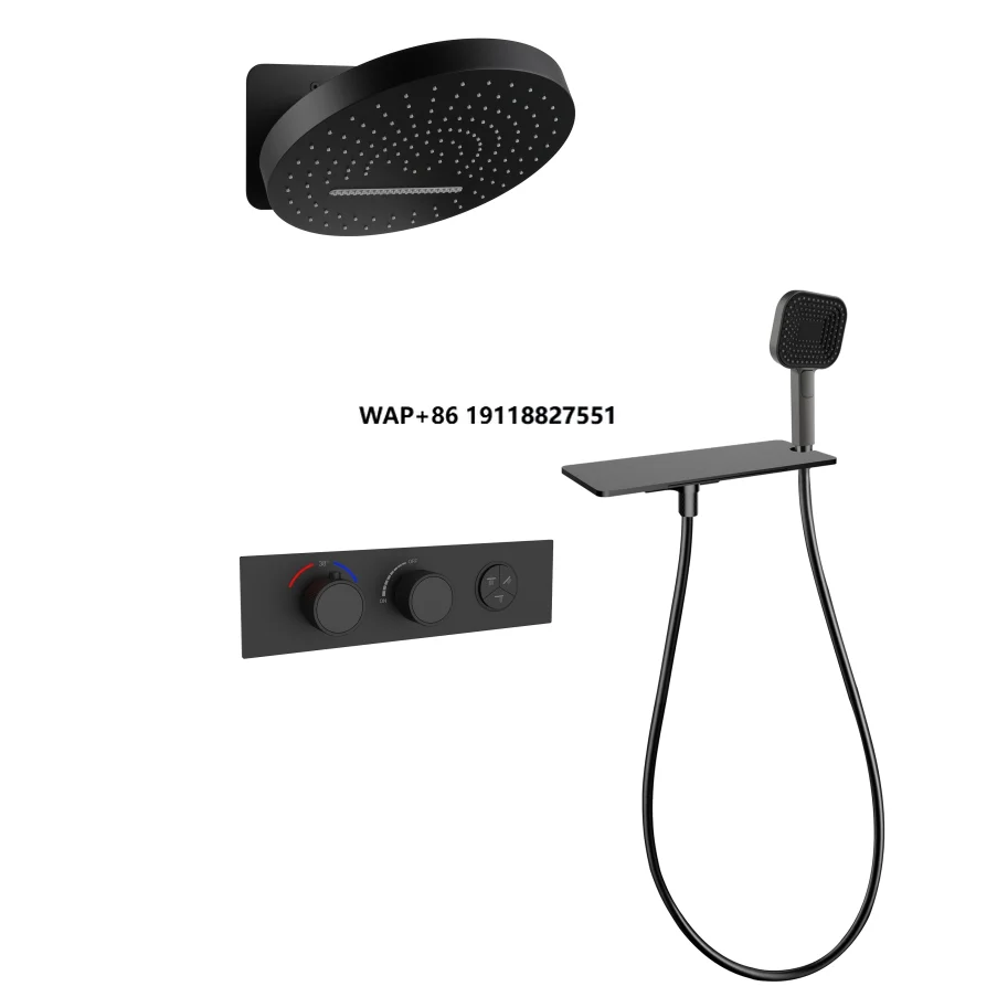 Mosaz tři funkce konstantní teplota skrytý sprcha černá zeď montuje oběžník déšť sprcha hlava sada