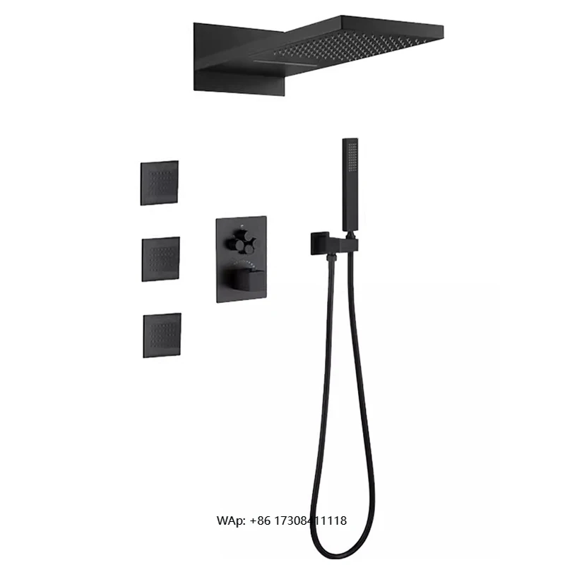 Černá mosaz koupelna déšť sprcha pípa sada zeď montuje koupelna mosaz sprcha sety s tělo dýza masáž