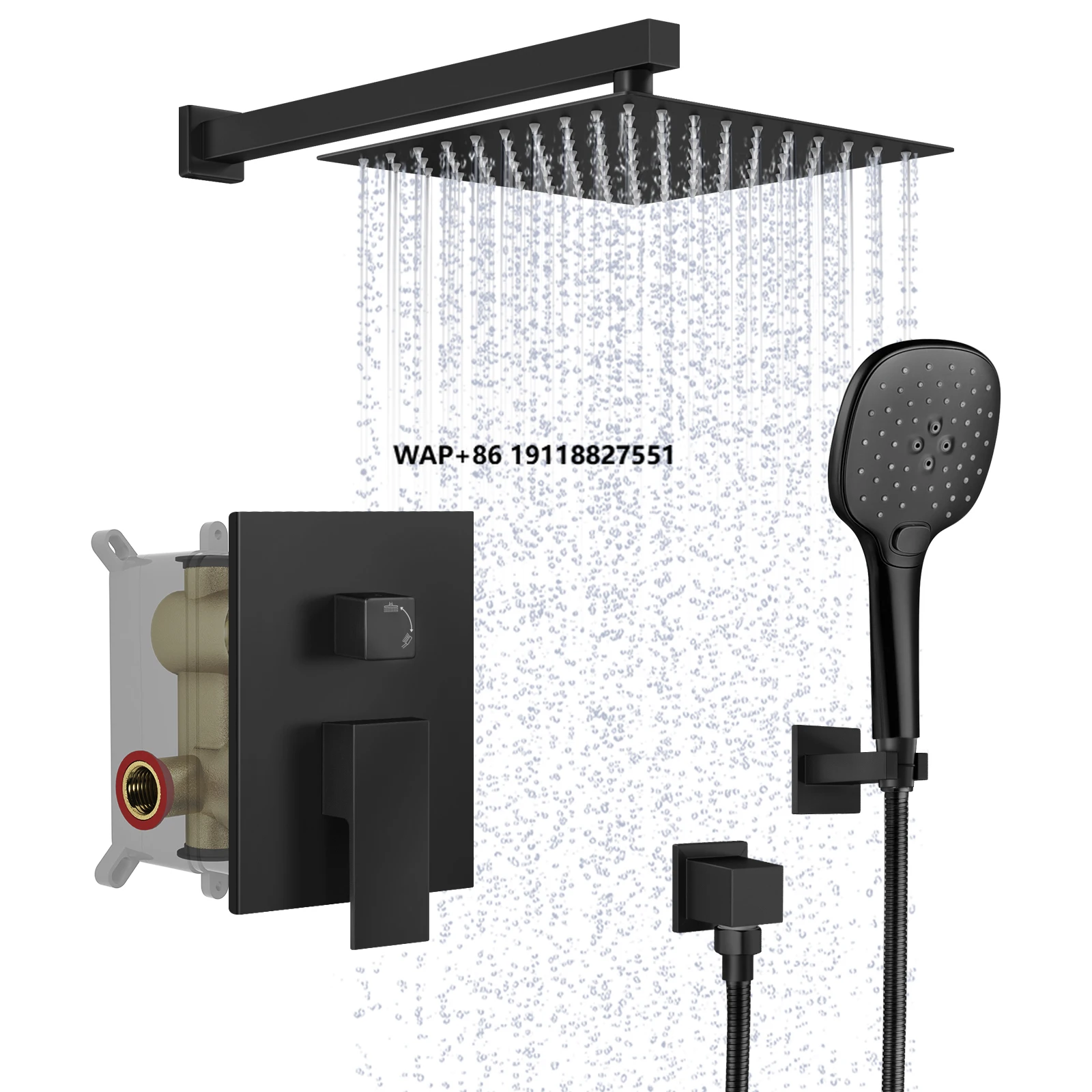 Matná černá luxusní déšť sprcha systém diverter moderní design zeď namontovat sprcha pípa sada mosaz sprcha soupravy