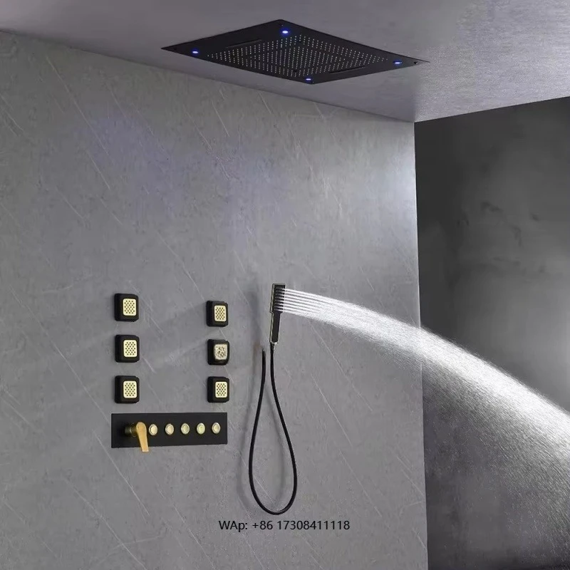 Strop déšť LED termostatická sprcha systém vysoký kvalita mosaz čtverec moderní keramika hotel kartáčovaný zlato sprcha sada tělo