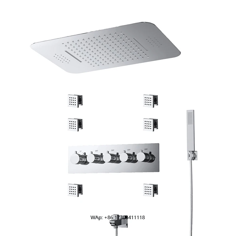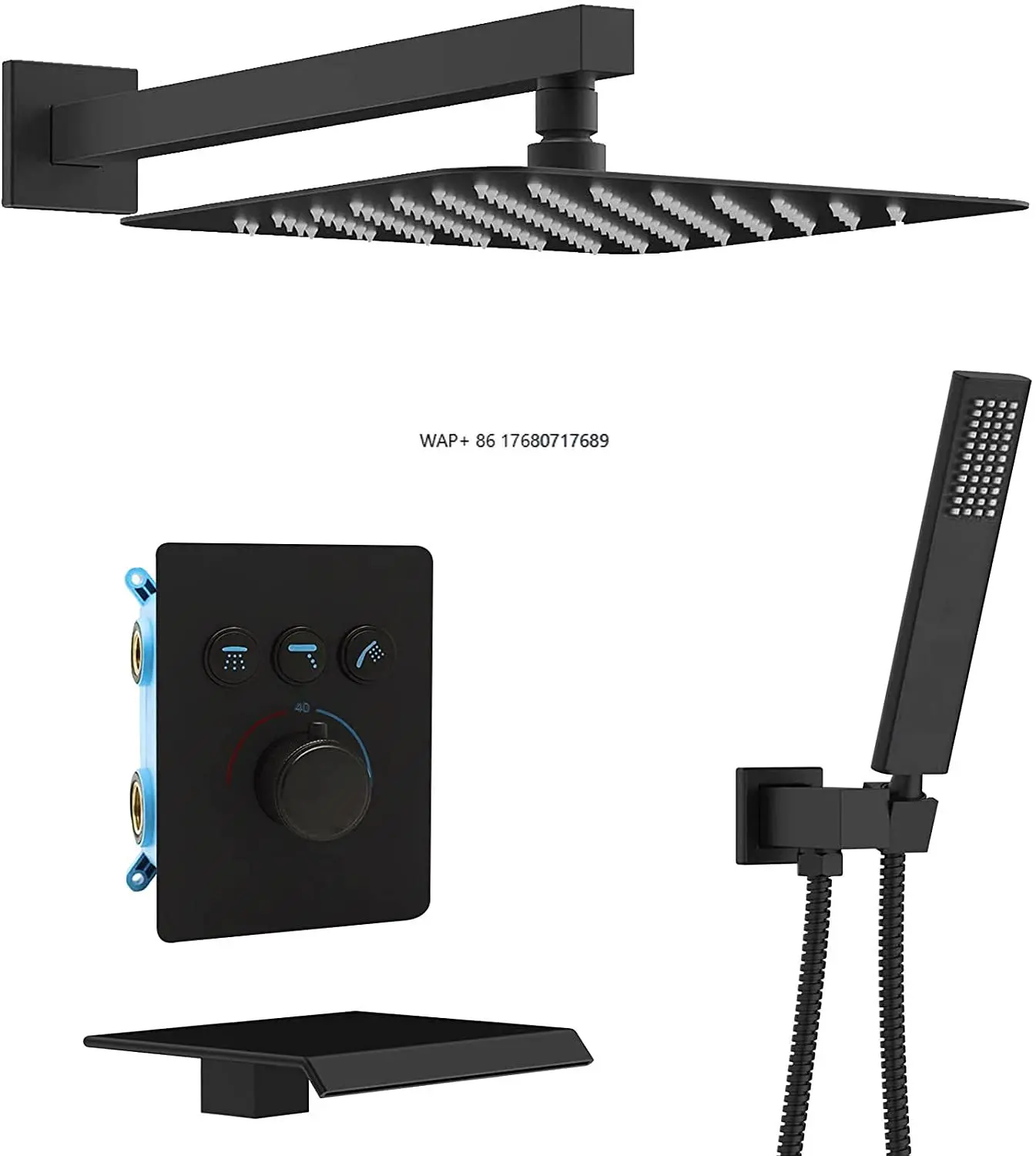 Mosaz skrytý 6-function konstantní teplota knoflík sprcha zeď typ vodopád rainforest showerhead sada