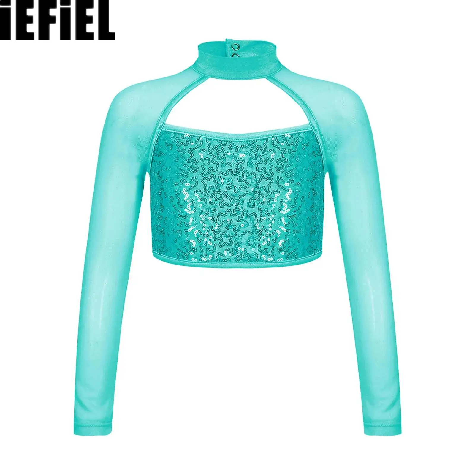 Děti dívčí lesklý flitry tančit topy pletivo zdobené osvěta nejvyšší dlouhé rukáv kolo límec dutý stylové oblečení
