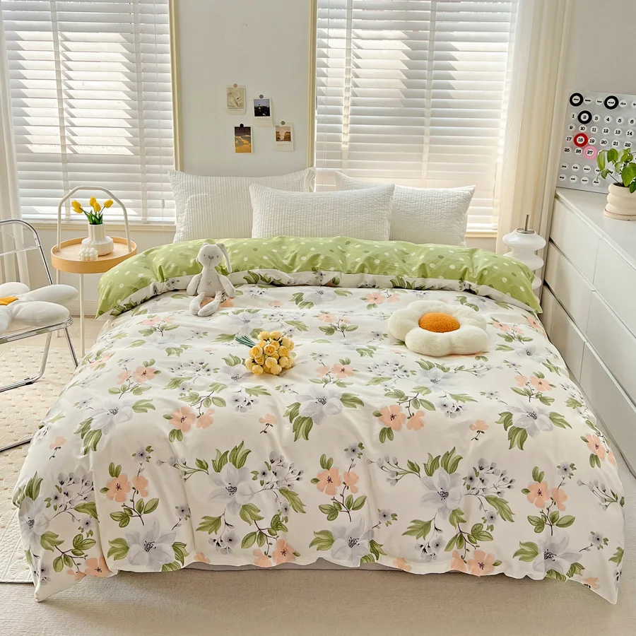 Dech z jaro květinová prošívaná deka zakrýt 100% bavlna reverzibilní zelená polka tečka měkké ložní prádlo zakrýt pro twin/full/queen rozměr postel