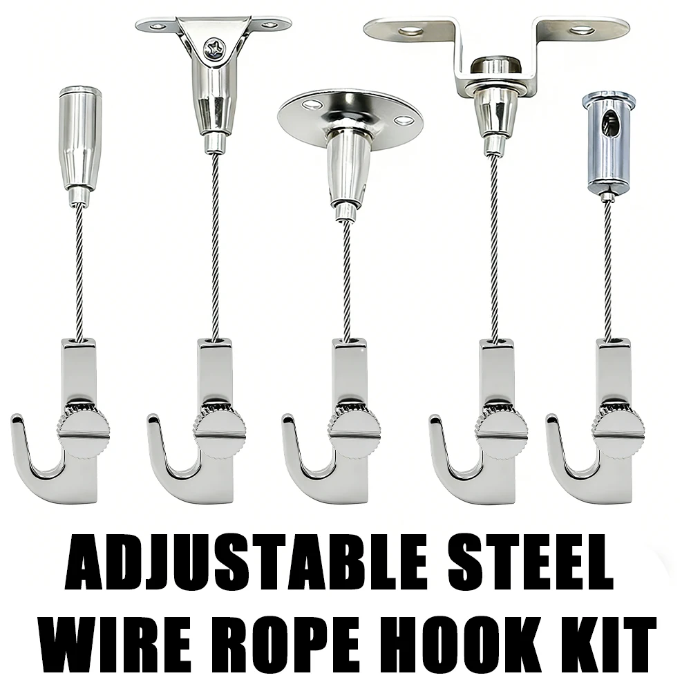 2ks 1.5mm 304 nerez ocel nastavitelný drát lano hák souprava strop závěsný hardware pro malba formulovat zrcadlo artwork LED panel