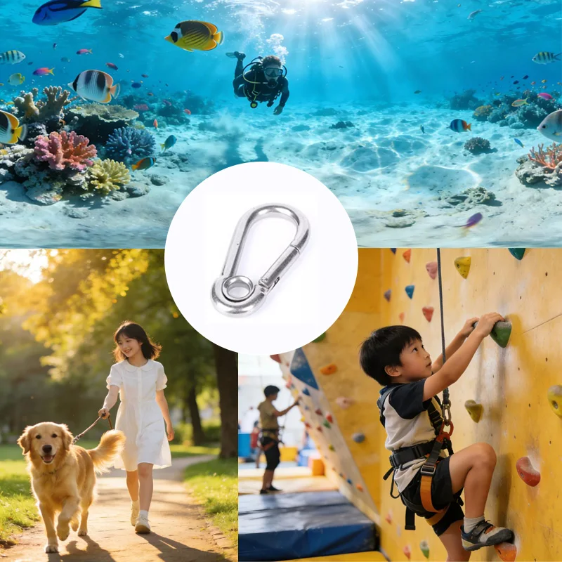 316 nerez ocel jaro drobnost karabina klipů rychlý spojení zamknout prsten jaro drobnost háčků běžící pás pro kemping tramping