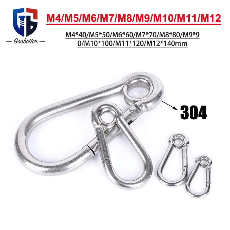 M4-M12 304 nerez ocel jaro hák bezpečnosti spona karabina klíčenka s prsten díra rychlý spojení horolezectví zamknout lanoví hardware