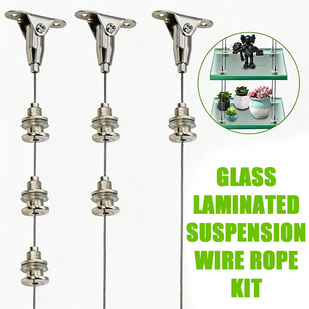 1set nastavitelný sklo suspenze drát lano souprava, 1.5mm nerez ocel kabel s 180° otočný ramínko & měď svěrky pro polici