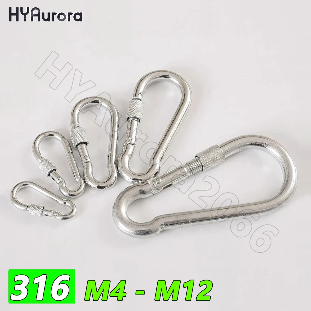 1ks 304/316 nerez ocel karabina karabina drobnost hák s nut-lock jaro spona klíč prsten M4 M5 M6 M7 M8 M9 m10 M11 M12