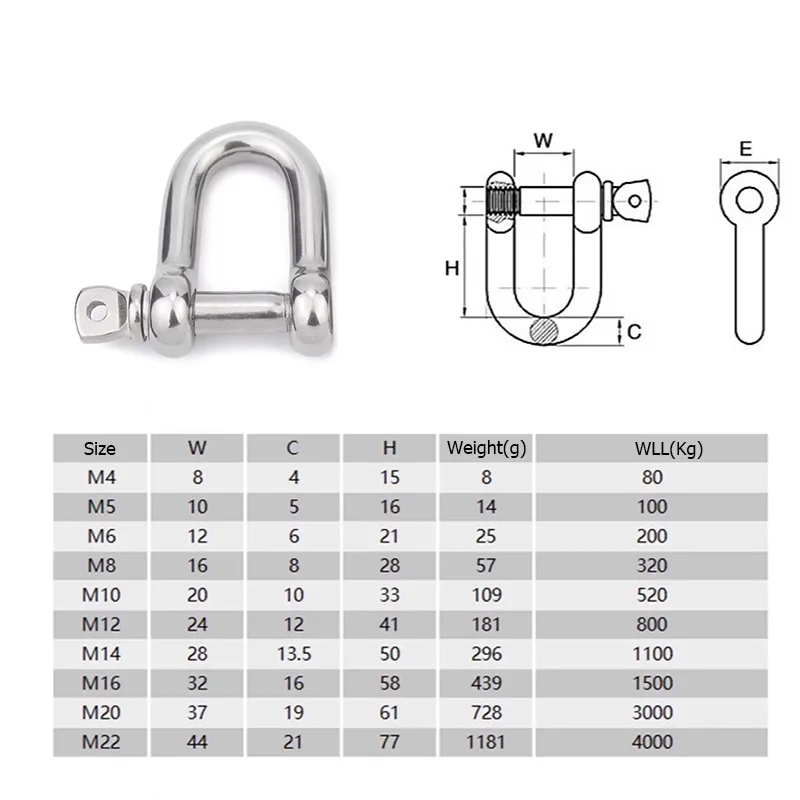 M4-M32 nerez ocel přímo D shackles těžký celní poplatek D luk spojení běžící pás kroužky hák liftingový lanoví loď hardware nástroje