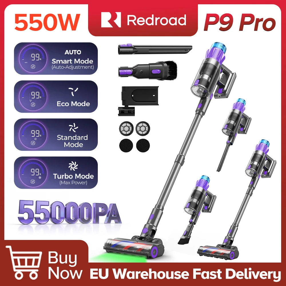 Redkey P9 pro 550W 55KPA ultra-strong akumulátorové vacuum čistič, 70 min dlouhé runtime, odnímatelný baterie & chytrý displej vacuum