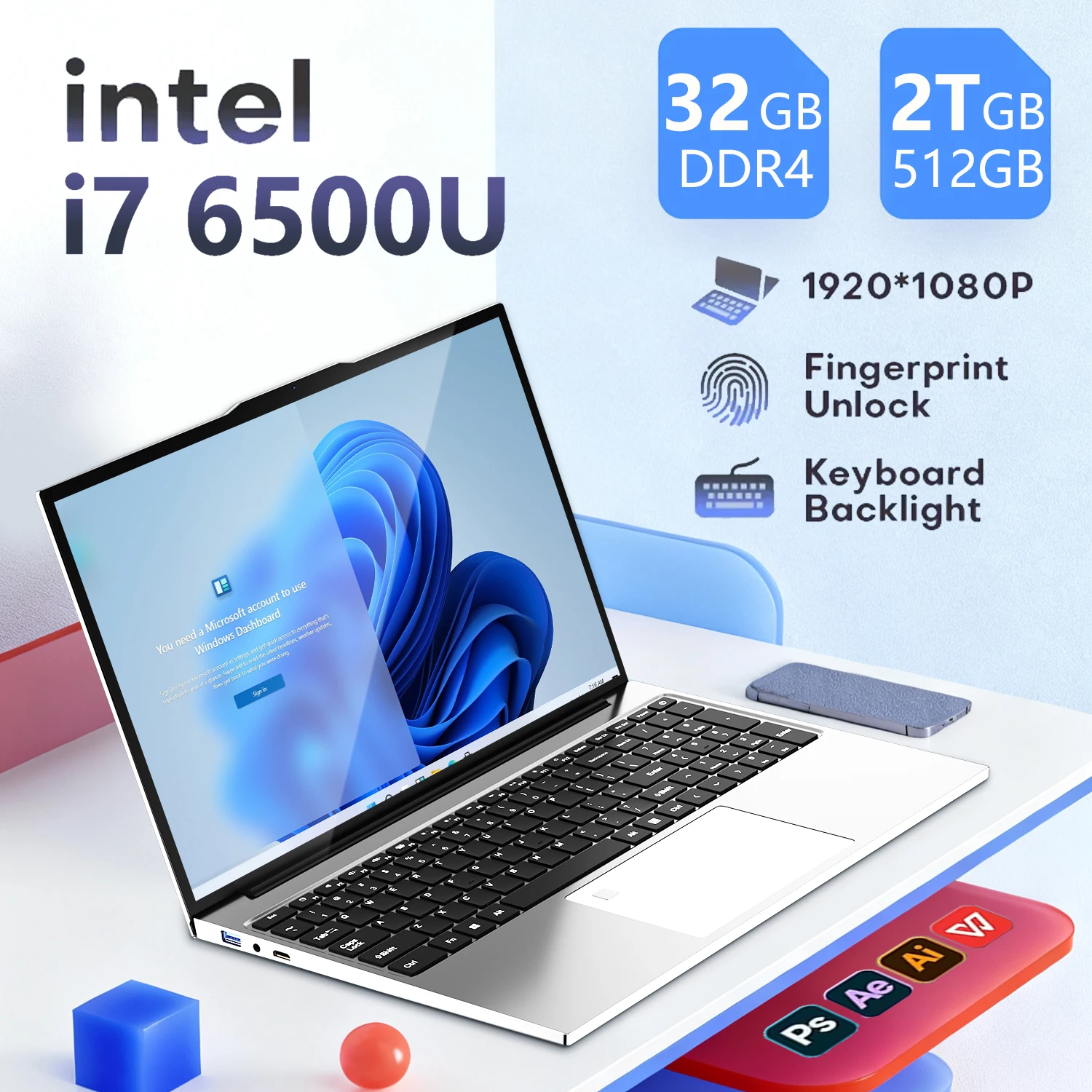 Originální 15.6" notebook 32gb ddr3 512gb 1TB SSD windows11 intel 6500Y úřad počítač s podsvícená daktyloskopie notebook PC hráč
