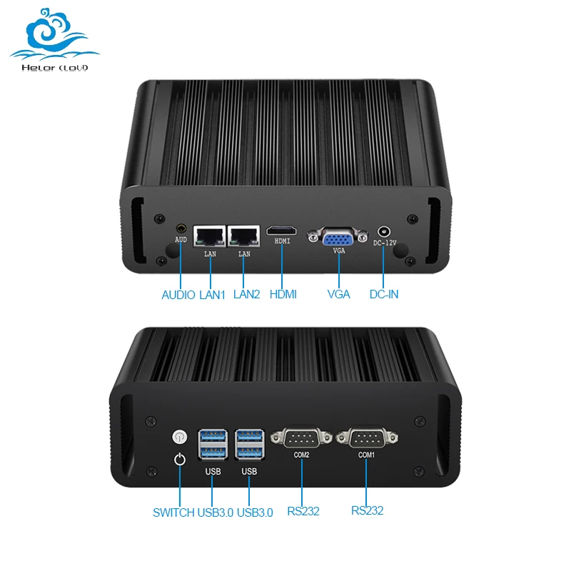 Helorpc průmyslový mini PC barebone systém intel jádra i7-5500u linux OS WIFI 3G/4G lte 4×USB3.0 2×RS232 COM průmyslový počítač