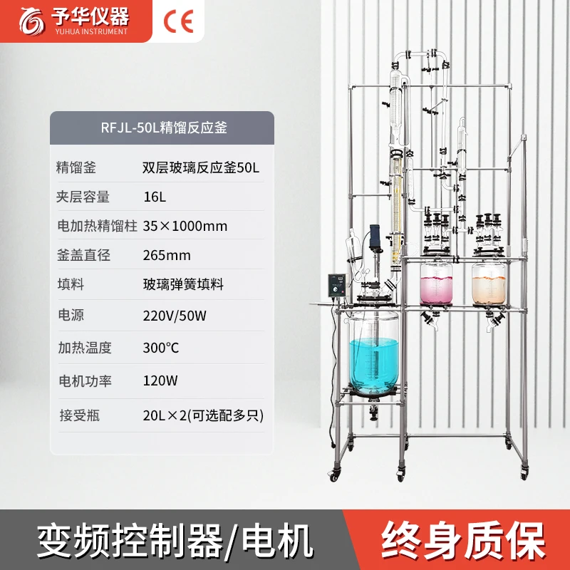 Laboratoře 50 100 200L točit se vacuum destilace jacketed dvojitý vrstva sklo reaktor stirred komora reakce rychlovarná konvice nádoba