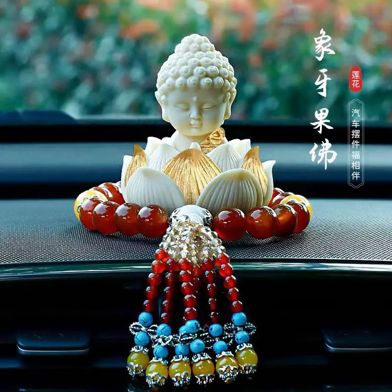 Slonovina ovoce buddhy auto okrasa lotos buddhy sochu přístrojová deska dekorace bezpečnosti blessing vnitřní dekorace příslušenství pro dopravní prostředek