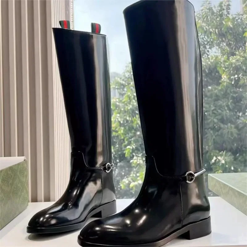 Podzim a zima nový nízko hustý pata dlouhé jezdecký boty pro ženy ruční móda styl plochý dno ženské koleno vysoký boty