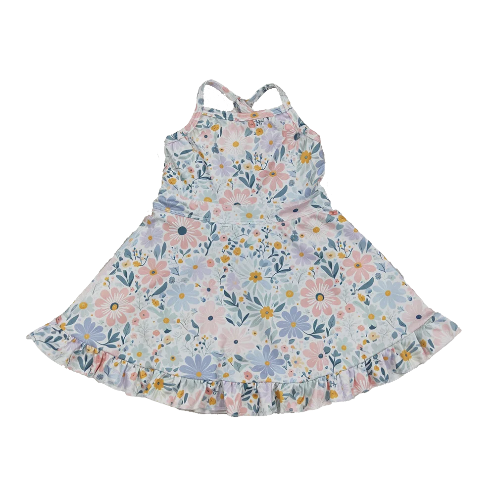 Děťátko dívčí aqua řemen květinová joga prohrábnout koleno délka šaty
