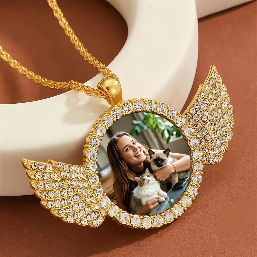 Nestandartní řetízek personalizované fotka malba anděl křídla drahokamu přívěsek řetězy náhrdelníky kreativní móda boky chmel šperků dar