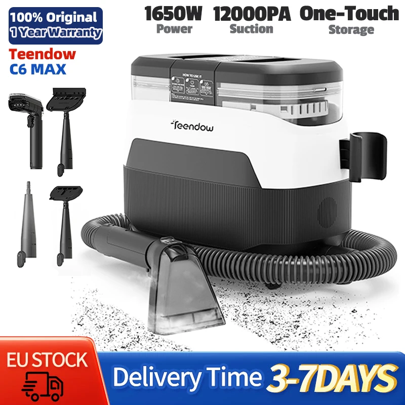Teendow C6MAX Handgehaltener Polster- und Teppichreiniger 3-in-1 1650W Dampf 12000Pa Saugkraft Doppeltank Haustierfreundlich Mehrere Düsen