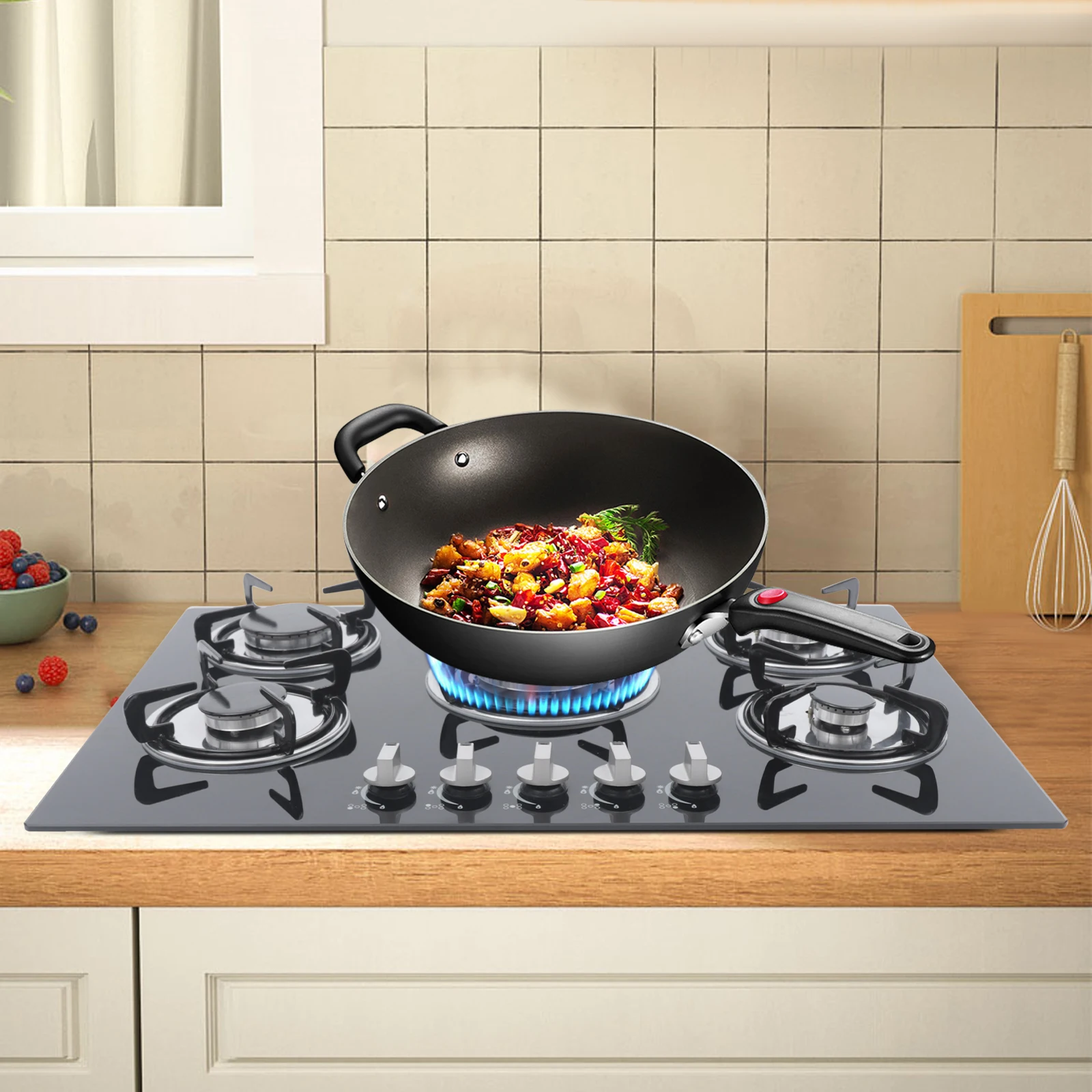 5-Brenner-Gasherd aus gehärtetem Glas, integriertes Erdgaskochfeld mit Flammendurchfallschutz für den Einsatz in Küche und Restaurants