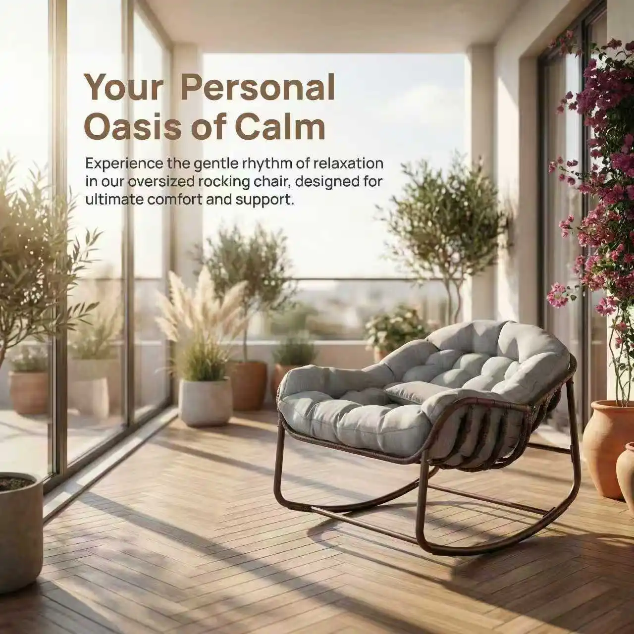 Schaukelstühle, Rattan-Freizeitstuhl, Egg Chair mit gepolstertem Kissen – Egg-Schaukelstuhl für Wohnzimmer, Veranda, Garten, Terrasse