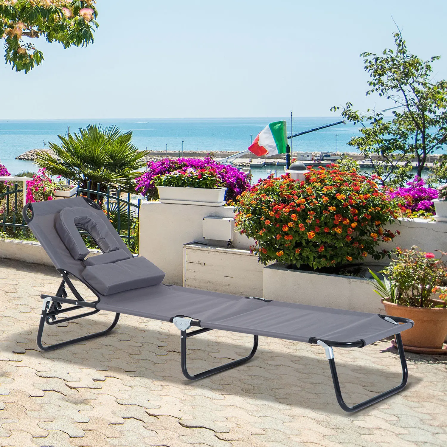 4-fach verstellbare, faltbare Outdoor-Liege mit Gesichtsöffnung und Kissen – Strandliege für Terrasse, Poolbereich, Camping & Strand