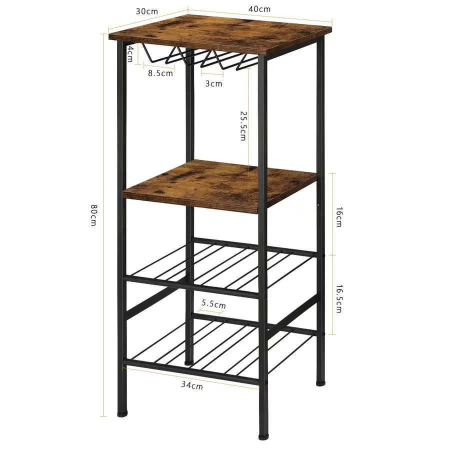 Weinregal, freistehender Flaschenregal mit Tischplatte und Weinglashalter, 4-stufiger Weinschrank aus Holz für 8 Flaschen Wein, Wein