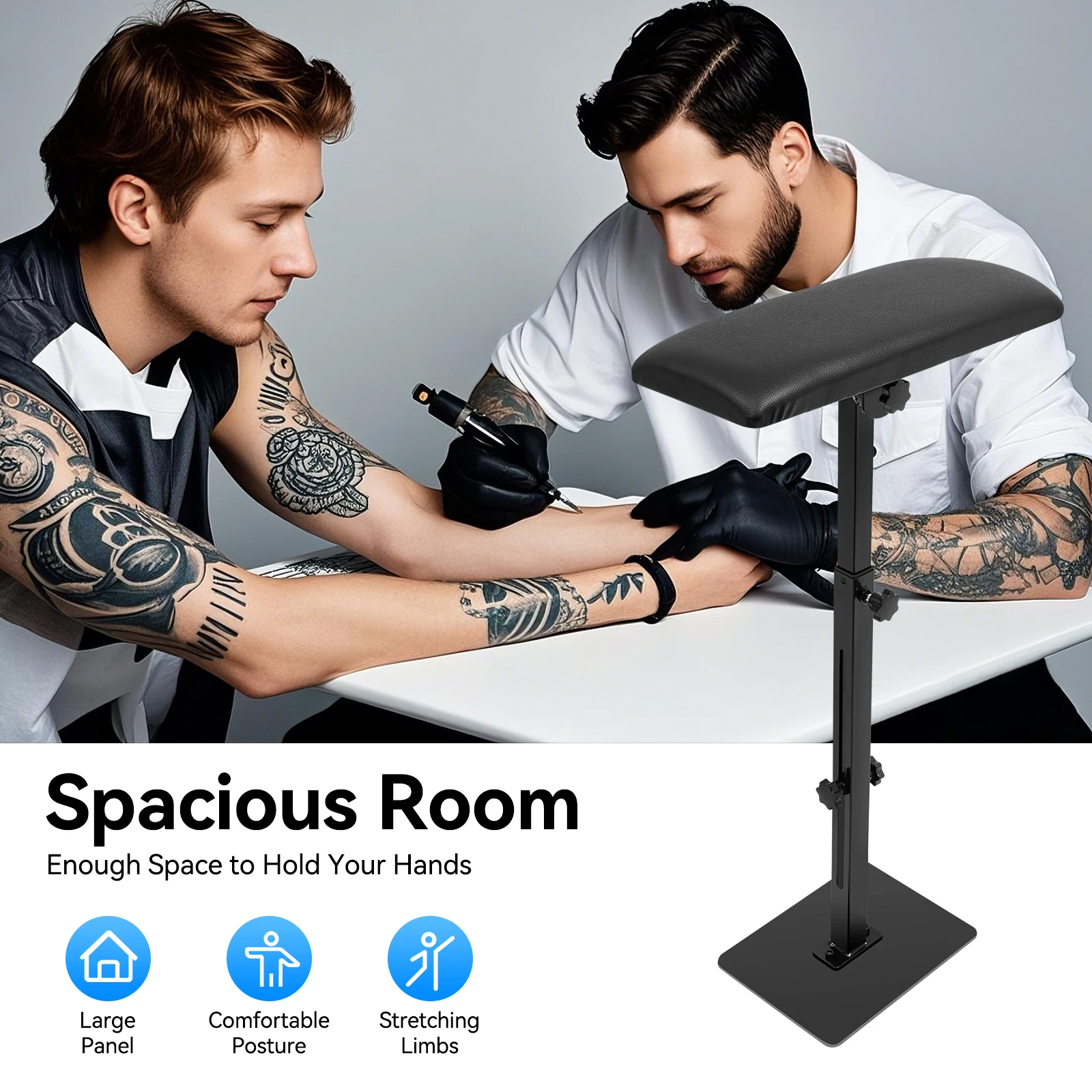Tattoo-Armstütze Verstellbar 56-88cm Tattoo-Stuhl Armlehne 360° ° Drehbare Tattoo-Armstütze aus Robustem Aluminiumlegierung, Stabiler Armlehnenständer