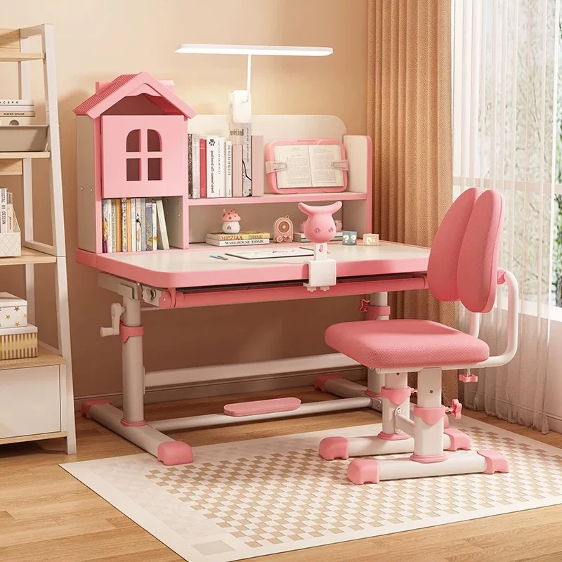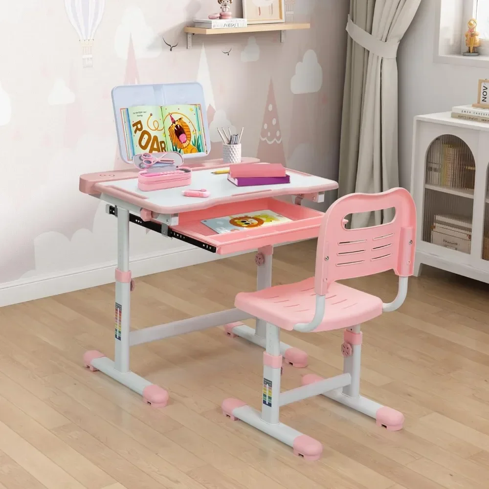 Ein Kinderschreibtisch- und Stuhlset, höhenverstellbarer Kinderschreibtisch, multifunktionaler Kinderschreibtisch mit Stauraum