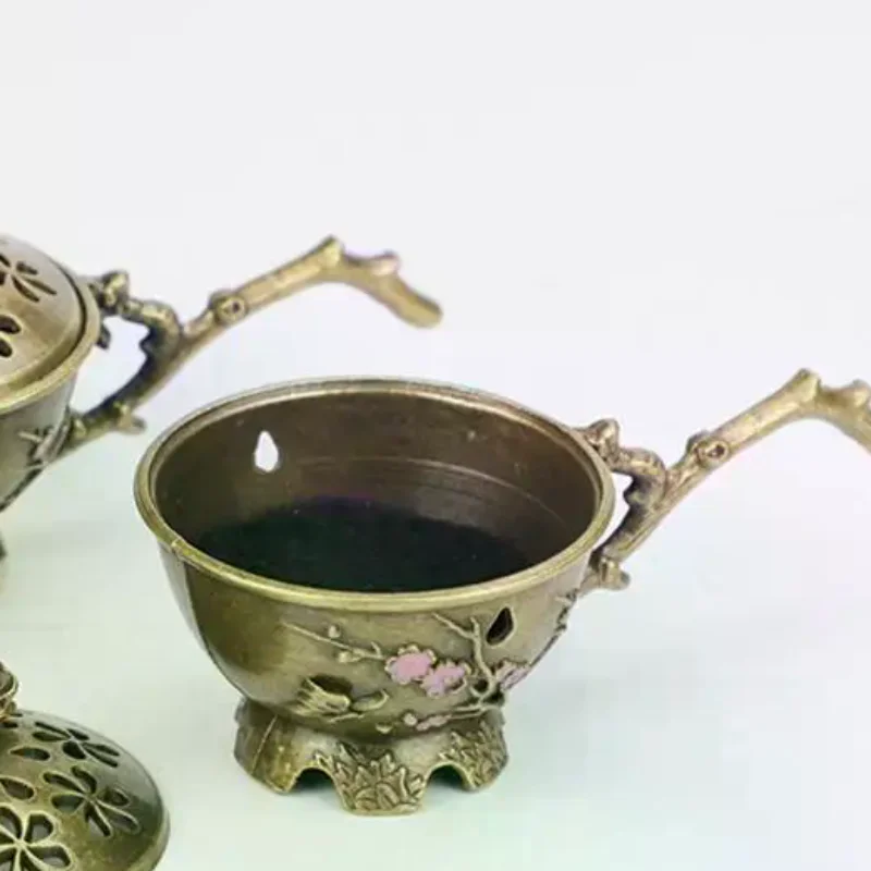 Pflaumenblüten-Räucherstäbchenhalter mit Griff, Retro-Design, Ausgehöhlter Räucherstäbchenhalter aus Zinklegierung, Kleines Kunsthandwerk für Heimdekoration