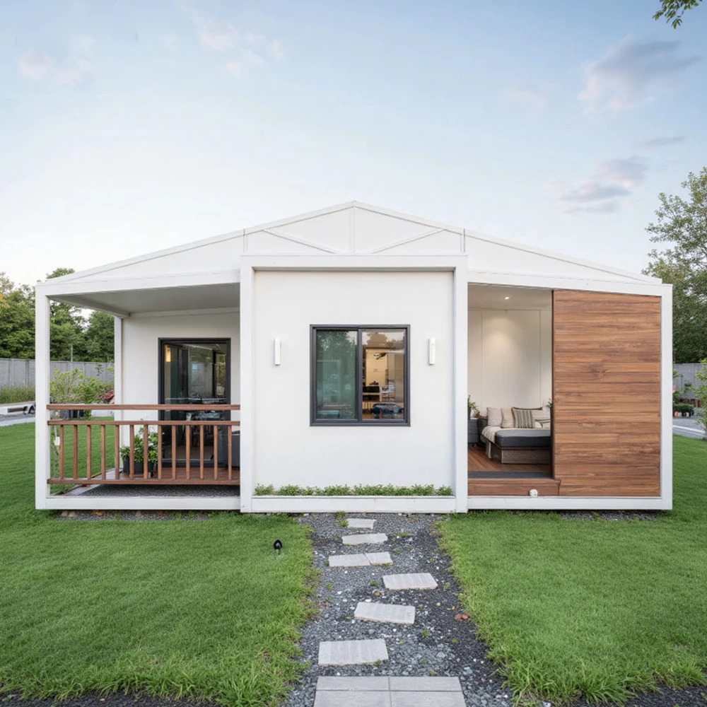 Stapelbare vorgefertigte Villa mit zwei Flügeln, erweiterbar, 30 klappbar, modular, 2-flügelig, direkt erweiterbar, Haus, 2 Schlafzimmer