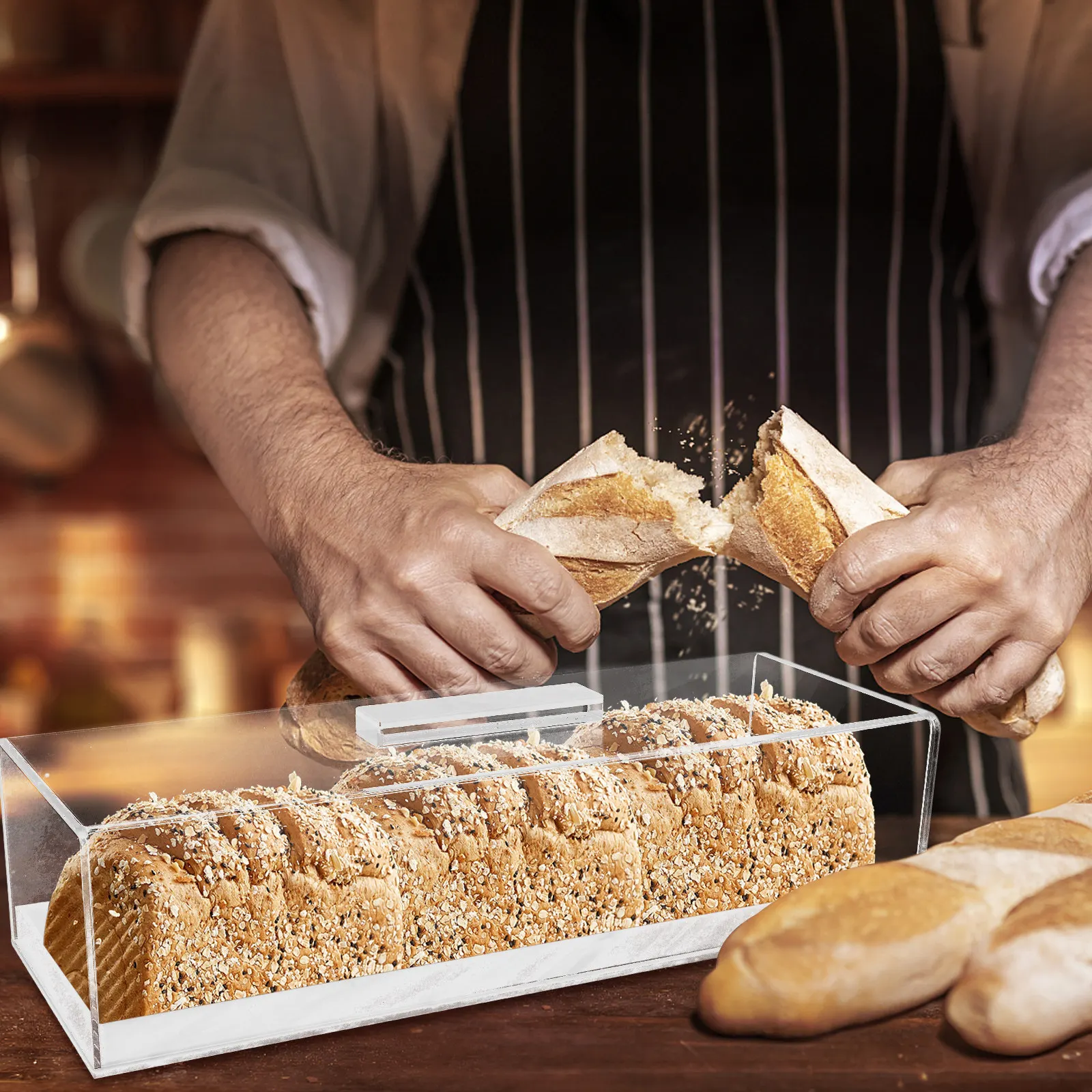 Rechteckiges Kuchenbrett mit transparenter Acrylabdeckung, multifunktionaler Kuchenständer mit Deckel für die Präsentation von hausgemachten Backwaren und Desserts