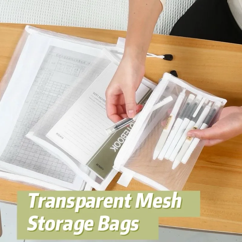 1–4 Stück transparentes Netz-Federmäppchen, große Kapazität, Aufbewahrungstasche, Nylon-Reißverschluss-Federmäppchen, Büro- und Schulbedarf, Bürobedarf