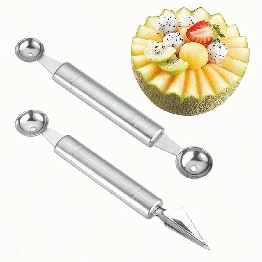 Doppelköpfiger Obstlöffel aus Edelstahl, Grabkugel, Schnitzöffel für Früchte, doppelter Verwendungszweck, für frische Früchte in der Küche, JXB