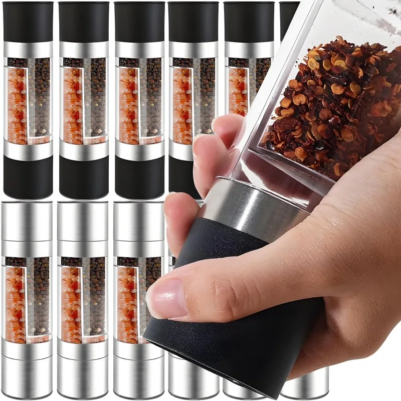 2-in-1-Edelstahl, manuelle Salz- und Pfeffermühle, verstellbare Gewürzflasche, Gewürzmühle, Behälter, Haushalt, Küchenhelfer