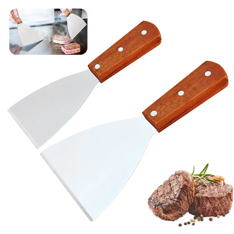 Edelstahlklinge Grill Schrägkante Schaber Burger Spatel Turner Antihaft-Pizzaschaufel Pfannkuchen Rindfleisch BBQ Kochutensilien