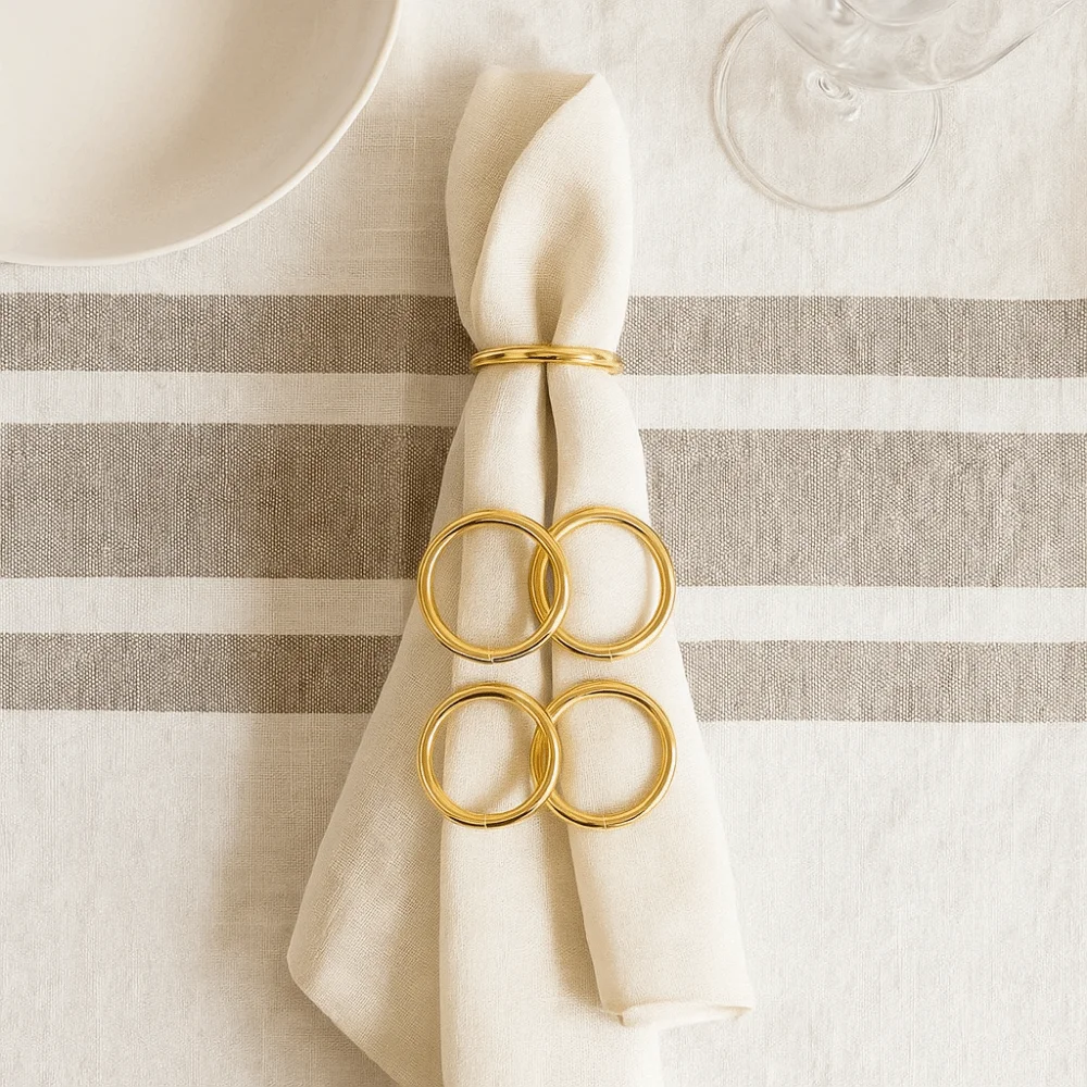 10 Stück moderner runder Serviettenring aus Edelstahl, minimalistischer Stil, goldfarbener Serviettenhalter, dekorative glänzende Serviettenschnallen, Abendessen
