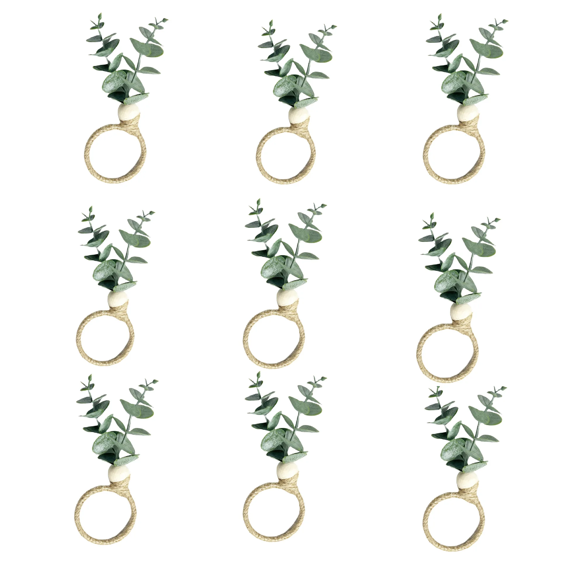 6 Stück künstlicher Blumen-Serviettenring, moderne und einfache Schnalle im nordischen Stil, Hoteltisch-Einstellung, Eukalyptus-Serviettenhalter