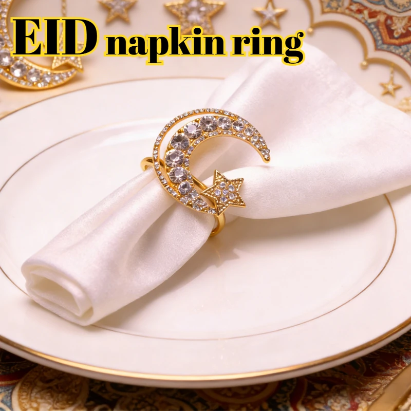 Intarsien Zirkon Stern Metall Serviette Halter Neue Eid Geschirr Set Festival Serviette Ringe Ramadan Party Tisch Dekor Liefert