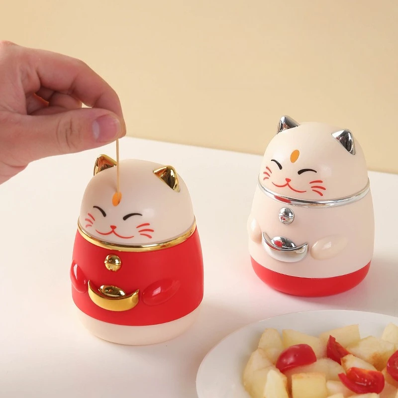 Zahnstocherhalter Lucky Cat Dispenser Pop-Up Automatischer Zahnstocher Küche Restaurant Zahnstocher Behälter Zahnstocher Aufbewahrungsbox