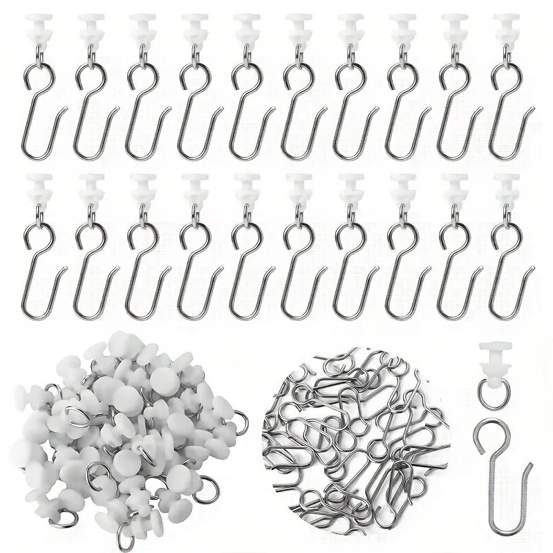 30 Stück Premium-Stahl-Vorhanghaken, weiße Fensterringe, langlebiges Wohnaccessoire für Stangen