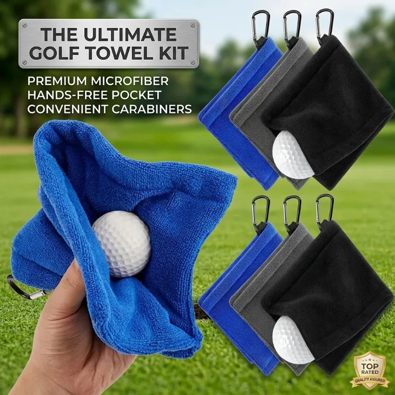 Mikrofaser-Golftuch mit Karabinerhaken, Quadratisches Wasserabsorbierendes Reinigungstuch für Golfbälle und Schlägerköpfe