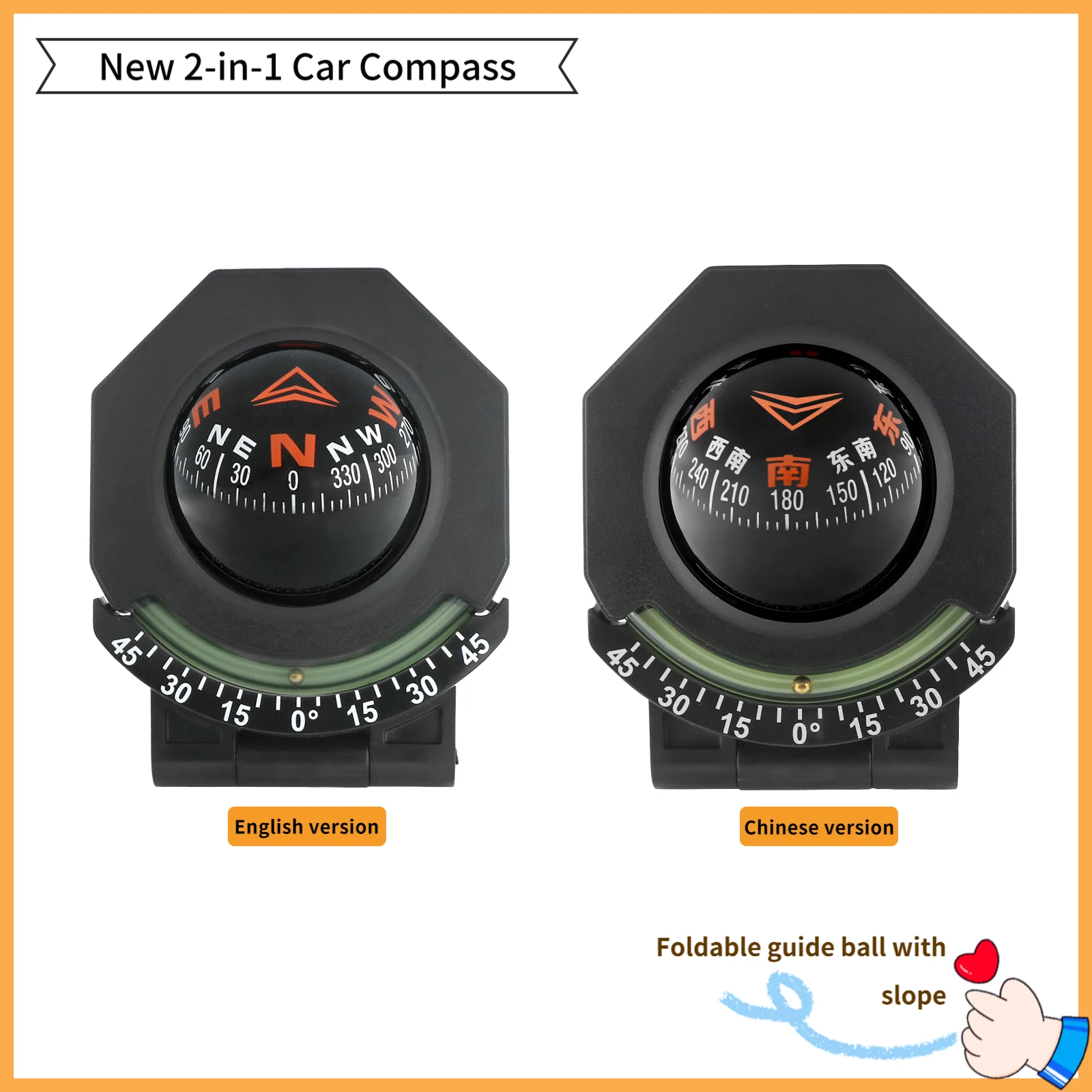 Explorer's 2-in-1-Auto-Kompass, Aluminium-Zifferblatt und Neigungsmesser, fluoreszierend und faltbar, professionelle Navigation zum Fahren, Wandern
