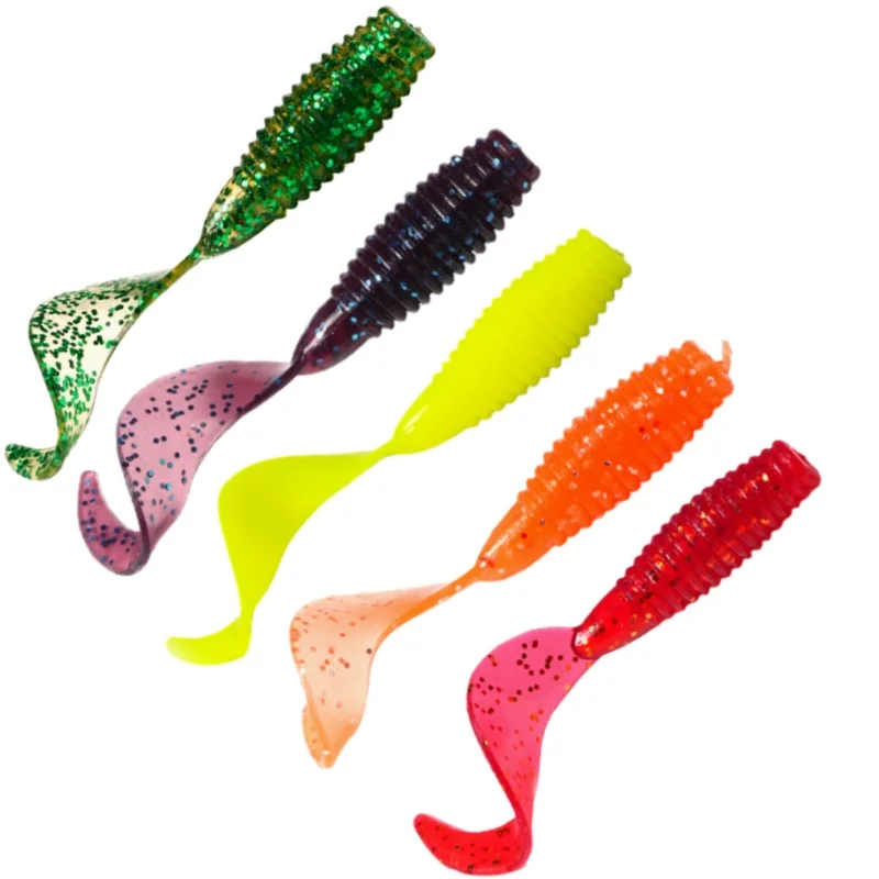 Wondersee 50PCS Weiche Köder Wurm Angeln Locken 25mm 30mm 35mm PVC Bionic Coiled Schwanz Moggot Grub locken Wobbler Karpfen Swimbait