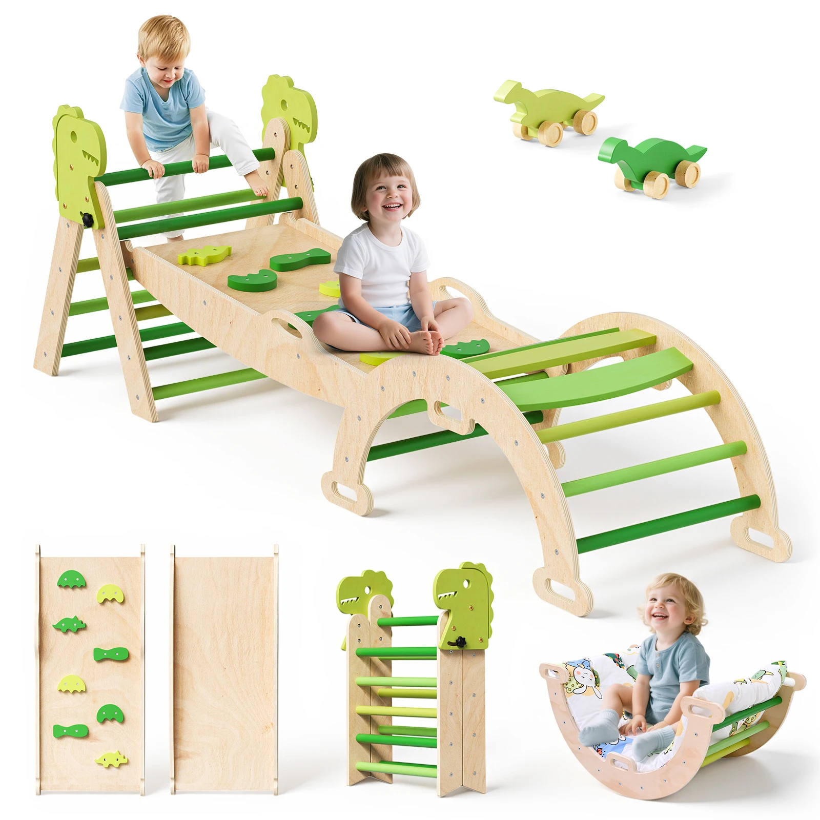 7-in-1-Kletterdreieck aus Holz mit Rampe, Bogenkletterer, Klettergerüst für Kleinkinder, Spielplatz, Indoor-Spiel, Fitnessstudio, Rutsche für Kindertraining