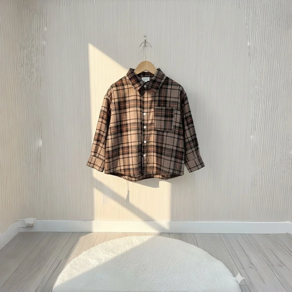 SeasonSea Frühling Herbst Kinder Kariertes Hemd Langarm Jungen Mädchen Vintage Karierte Bluse Casual Umlegekragen Tops Kinder