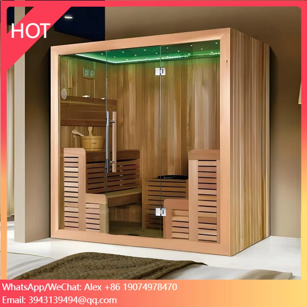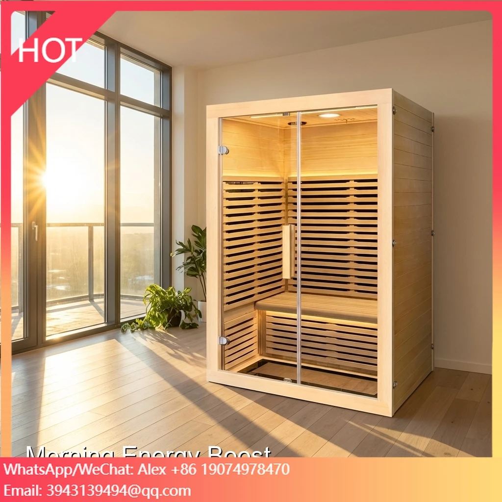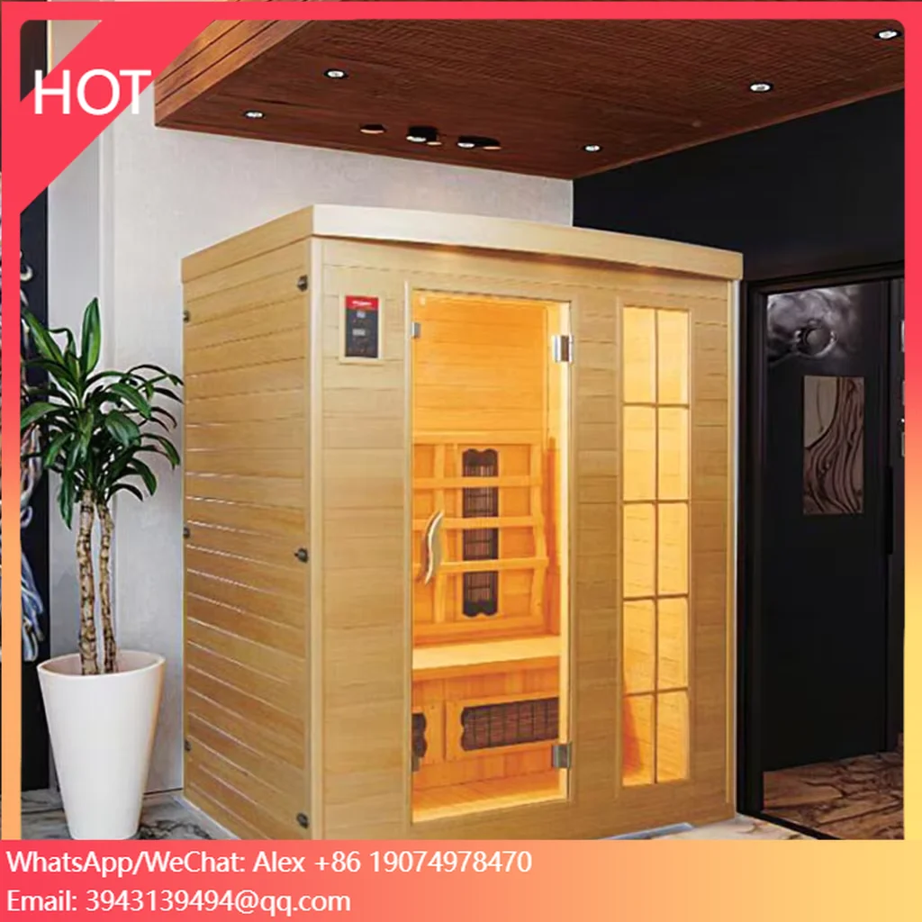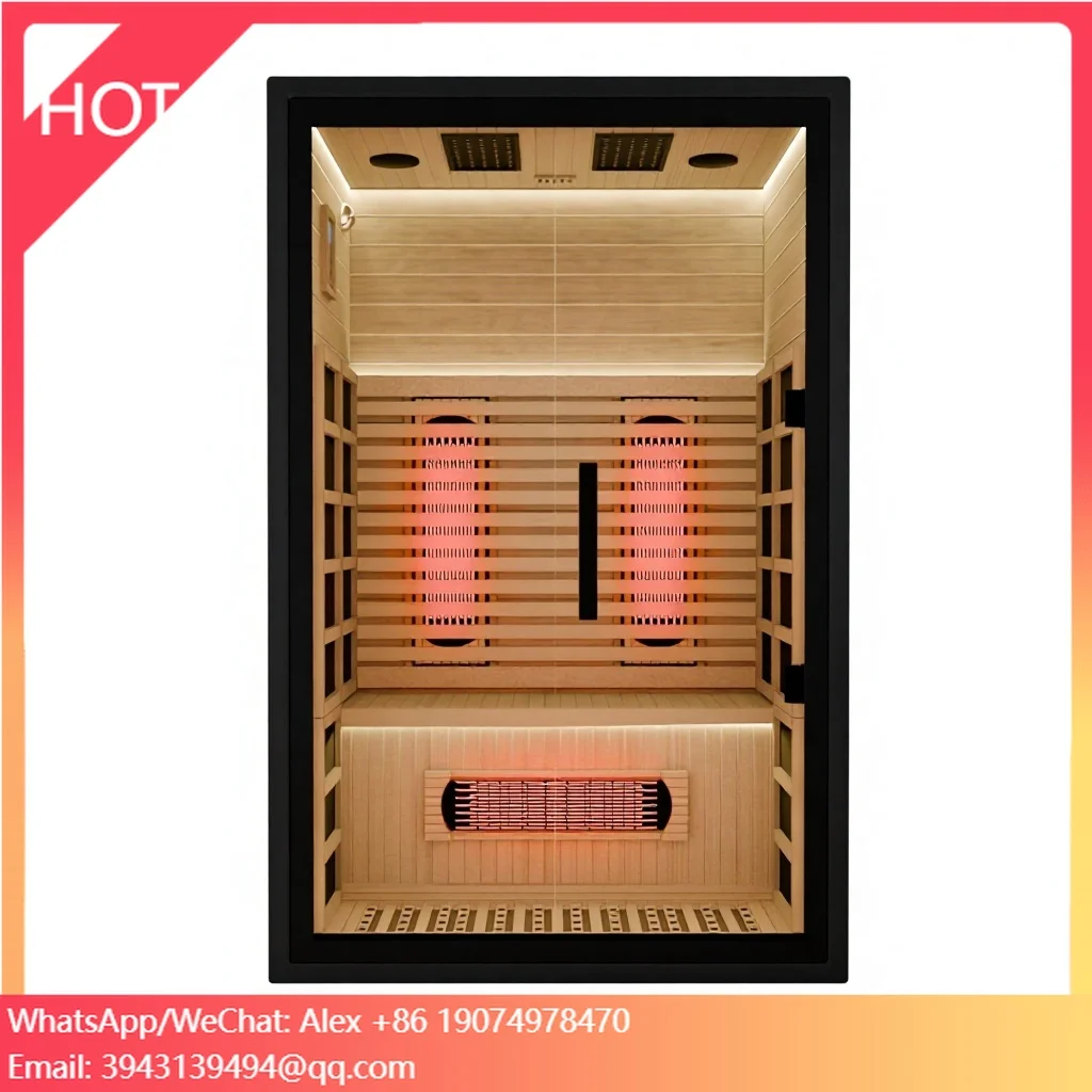 Maßgefertigte Hochwertige Langlebige Holz-Infrarot-Elektro-Rotzedernsauna für 2 Personen Moderne Apartment-Sauna